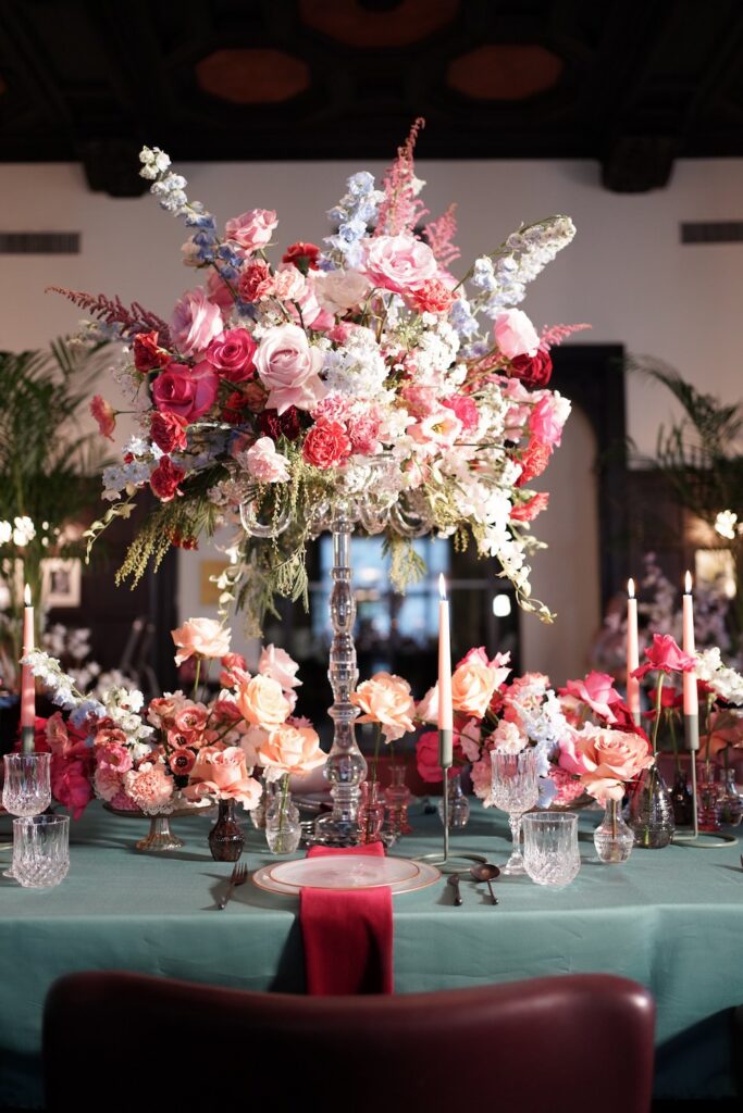 Pravo ravnovesje odtenkov, kontrastov in tekstur lahko vašemu dogodku da maksimalistično estetiko, ki je hkrati trendovska in brezčasna. “Več, kot je barv in vzorcev, tem bolje,” pravi Metka.